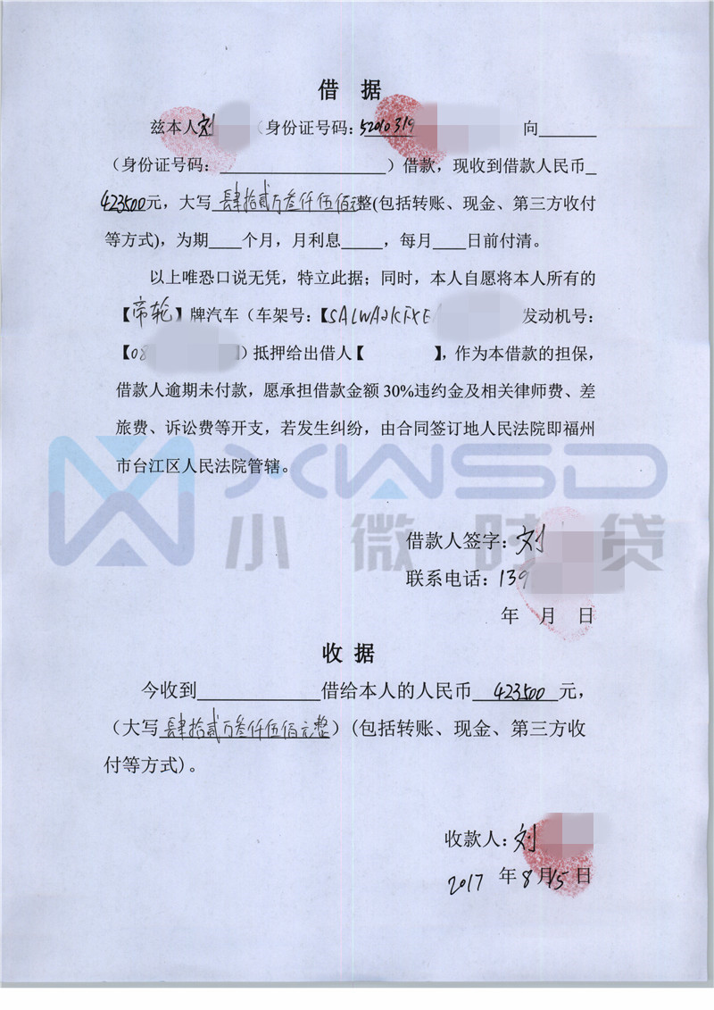 本项借款属于车辆抵押借款,借款总金额42.35万元整,借款人名下路虎揽胜已进行抵押登记,借款人刘先生本借款用于个人资金周转,个人信息已经通过审核,其经济状况良好,个人征信无不良,还款能力强,还款来源为日常收入。