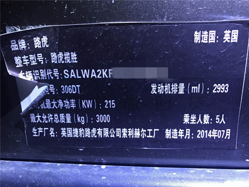 车辆品牌型号:路虎揽胜